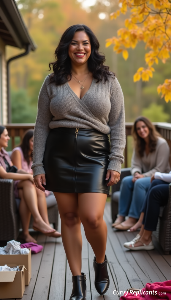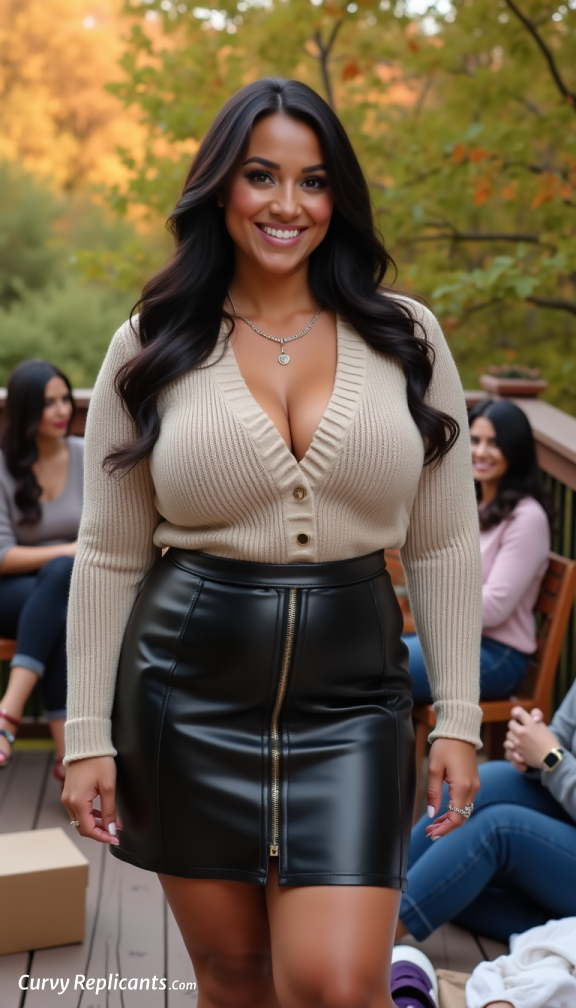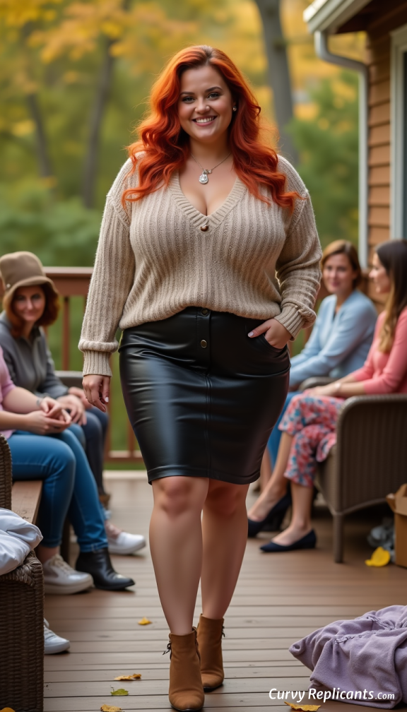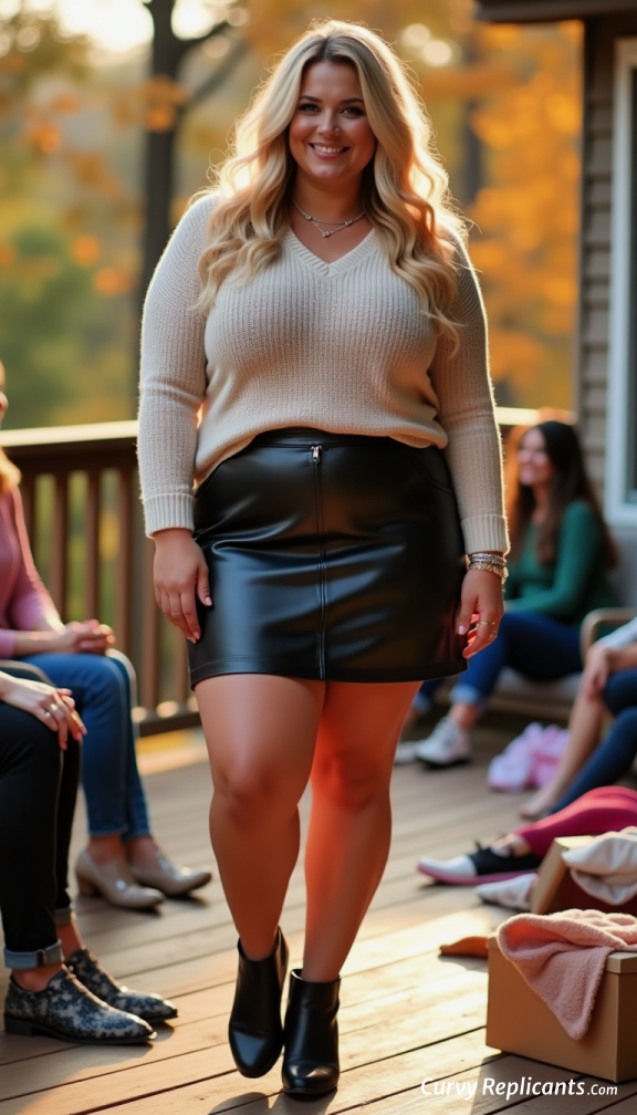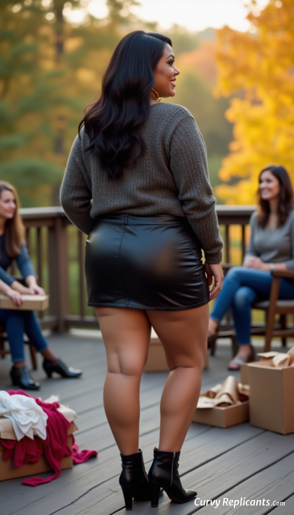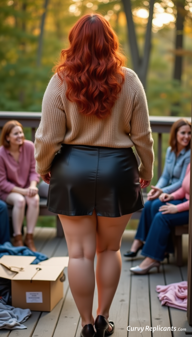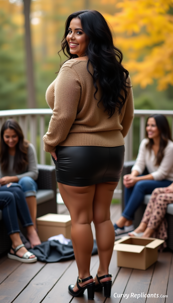 Think of an early fall day and a little try-on party out on the deck. Curvy Replicants all beautiful but also fake!!