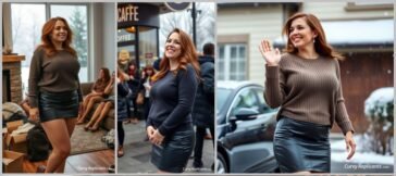 Is this even a look? Anyways, we typed in curvy woman in Leather Skirt and Sweater standing in line for coffee. From there the AI will produce pictures… View Images